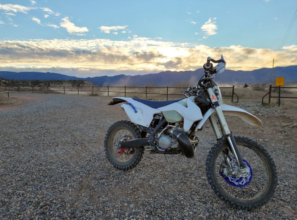 Enter the KTM 250xc! This KTM is a carbureted 250 2 stroke made for open-high speed trails but is also really good at slow technical stuff. The KTM xc line shares most of its DNA with the KTM 250 SX (which is their 2 stroke track line) while also having a large (2.6 gallon tank), electric start, and a kick stand. Electric start is something i really missed on my honda especially on the trails.